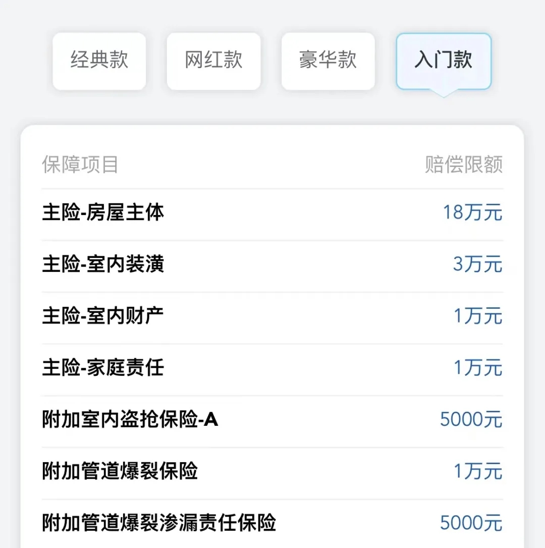 再比如說(shuō),室內(nèi)裝潢賠償限額為3萬(wàn)元,但實(shí)際損失2萬(wàn)元。